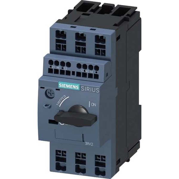 Leistungsschalter Baugröße S00 für den Motorschutz, CLASS 10 A-Auslöser 1,8...2,5 A N-Auslöser 33 A Federzuganschluss Standardschaltvermögen mit querliegenden Hilfsschalter 1S+1Ö Leistungsschalter SIRIUS 3RV2 für Motorschutz zum sicheren Abschalten bei Kurzschluss und Schutz der Verbraucher und Anlage vor Überlast, sowie zur sicheren Trennung der Anlage vom Netz.Die kompakten und klimafesten Leistungsschalter sind durch ihre geringe Abwärme für den Einsatz in Verbraucherabzweigen optimiert, natürlich auch für IE3/IE4-Motoren und gleichermaßen für das Schalten von Gleichstrom. Weltweite Zulassungen (z.B. IEC und UL/CSA) und Anwendungen in explosionsgefährdeten Applikationen (ATEX bzw. IEC Ex) sind selbstverständlich.Verfügbar sind Gerätevarianten für Motorschutz (auch mit Überlastrelais-Funktion), Anlagenschutz, Kurzschlussschutz von Starterkombinationen, Transformatorschutz, als Haupt- und NOT-AUS-Schalter und für den Einsatz in IT-Netzen. Sie sind mit Schraub- oder Federzuganschluss für einen schnellen, wartungsfreien und rüttelsicheren Anschluss, und wahlweise mit eingebautem Hilfsschalter erhältlich.Das umfassende Zubehör, wie z.B. Hilfsschalter, Hilfsauslöser, Meldeschalter etc. ist einheitlich für alle Baugrößen. Der Einsatz verschiedener Energieeinspeisemöglichkeiten, wie dem zugehörigen Einspeisesystem SIRIUS 3RV29, reduziert die Hauptstromkreisverdrahtung erheblich.Die Leistungsschalter 3RV2 lösen die bewährte Baureihe 3RV1 ab.Einfach, effizient, immer aktuell - der SIRIUS Systembaukasten.