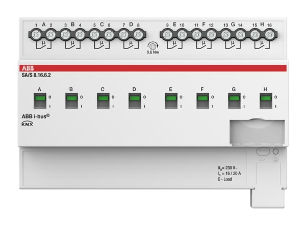 R0011 Der Schaltaktor schaltet über 8 potentialfreie Kontakte unabhängige elektrische Lasten über ABB i-bus® KNX. Das Gerät verfügt über integrierte Energiefunktionen. Dazu gehören eine unabhängige Laststrommessung in jedem Ausgang und eine einfach zu bedienende Berechnung der Leistung und des Energieverbrauchs für jeden Ausgang oder Gruppen von Ausgängen. Über ein integriertes Lastabwurfobjekt kann eine Einbindung in ein Lastkontrollsystem einfach realisiert werden. Das Gerät verfügt über eine manuelle Bedienung und Anzeige des Schaltzustandes der Ausgänge. Das Gerät 16/20 A, 16 A-AC3 (C-Last) ist besonders geeignet für Lasten mit hohen Stoßströmen, z.B. LED- oder Leuchtstofflampen (AX) nach EN60669. Produktreihe: KNX