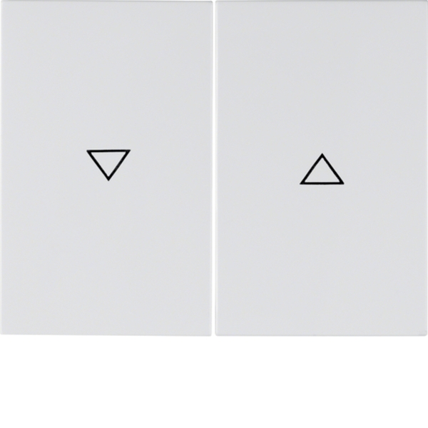 Die 2-fach Wippe mit Pfeilsymbol aus der K.1 Serie in polarweiß, glänzend, eignet sich für Jalousie-Wippenschalter/-taster sowie für Taster-Bedienungsanlagen. Für Unterputz-Installation konzipiert, besteht sie aus bruchsicherem, halogenfreiem Thermoplast. Ihre hochglänzende Oberfläche bietet eine ästhetische und langlebige Bedienlösung im Flächenprogramm, passend für Berker Schalterprogramme.