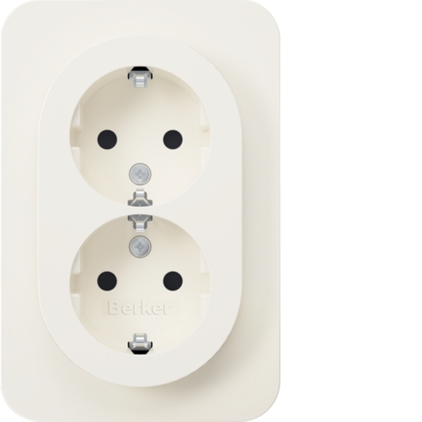 Doppelsteckdose SCHUKO, Abdeckpl., erh.BS, Berker R.1, polarweiß glänzend