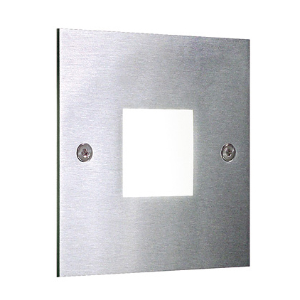 LED-Wandeinbauleuchtenset, IP54, schaltbar, edelstahl, quadratisch. Einbaumontage, Wandmontage Set inkl. Konverter zum Anschluss an 230 V-Netzspannung, schaltbar, und Hohlwand-Montagedose Ø DA: 68 mm / Einbautiefe: 65 mm Montageart: Einbaumontage, Montageort: Wandmontage, Material: Edelstahl / Acryl / Kunststoff / Silikonkautschuk, Schutzart raumseitig: nach DIN EN 60529: IP54, Schutzklasse: (EN 61140) I, Spannung: 230V AC 50Hz, Leistung: 1,2 W, Anzahl der Leuchtmittel / Fassungen: 1 Stück, Lichtstrom: 40 lm, Farbtemperatur: 3.000 K, Verstellbarkeit: nicht verstellbar, Mit Betriebsgerät: Ja, Dimmbar: Nein, Art der Dimmung: schaltbar.