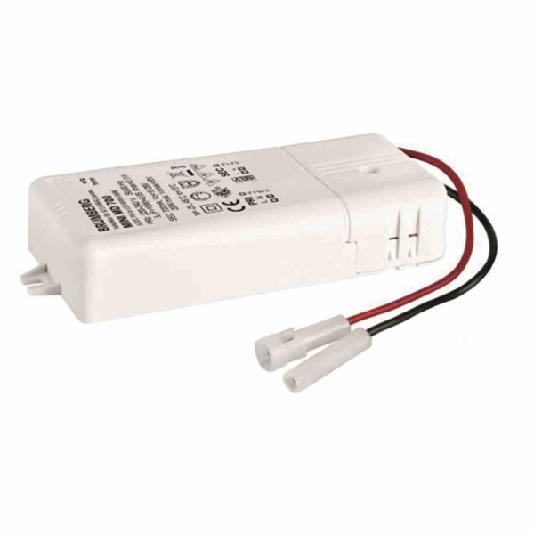 LED-Konverter 350 mA, Phasenabschnitt dimmbar. Dieser Konverter ist durch Sicherungseinrichtungen gegen Überspannung und Kurzschluss sowie thermische und elektrische Überlastung geschützt. Die Eingangs- und die Ausgangsklemme ist für Leitungen mit einem Querschnitt von bis zu 2,5 mm² geeignet. Material: Kunststoff, Schutzart: nach DIN EN 60529: IP20, Schutzklasse: (EN 61140) II, Spannung: 230V AC 50Hz, Leistung: 10W, Art der Dimmung: Phasenabschnitt.