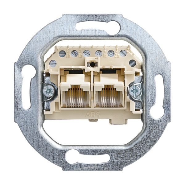 A0235 2 parallel geschaltete Steckbuchsen. Für 8-polige Stecker, RJ 11/12, RJ45. ISDN-fähig. Kat. 3. Mit Schrägauslass. Bauart nach IEC 60 603-7-2:2007. Schraubkontakte. Passend zu Zentralscheibe 1803-02-xxx. Designlinie: Plattform 63, Busch-Duro 2000® SI, Reflex SI, Busch-balance® SI, Busch-art linear®, future® linear, Busch-axcent®, solo®, pur edelstahl, carat®, Busch-dynasty®, alpha, impuls Designlinie Variante: Busch-Duro 2000® SI, Busch-Duro 2000® SI Linear, Reflex SI, Reflex SI Linear, Busch-art linear®, Busch-art linear® - mit Dekorring, Busch-art linear® - Echtmaterial, future®, future® linear, Busch-axcent®, Busch-axcent® pur