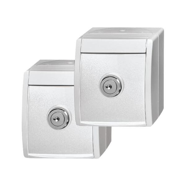 A0836 Zum Anschließen von elektrischen Verbrauchern. Mit 2 gleichen Sicherheitsschlössern im Klappdeckel und 2 gleichen Schlüsseln. Im verschlossenen Zustand nicht aufschraubbar oder demontierbar. Ca. 200 verschiedene Schließungen (nicht sortiert). Zum Betreiben von 2 Stromverbrauchern eines Benutzers in Gemeinschaftsräumen. Designlinie: ocean® Abmessungen Beschriftungsfeld: 57.8 x 9.8 mm