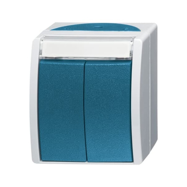 A0374 Zum Schalten von elektrischen Verbrauchern. 2 x 1-polig. Mit 2 getrennten Strombahnen. Ohne N-Klemme. Beschriftbar mit Beschriftungsträger 1763-53. Beschriftungsträger beleuchtbar mit Beleuchtungseinsatz 2152 NLI-53. Designlinie: ocean® Abmessungen Beschriftungsfeld: 57.8 x 9.8 mm