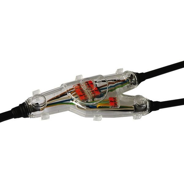 - Verbindungsmuffen: Für zwei Kabel, mit jeweils bis zu fünf Adern geeignet