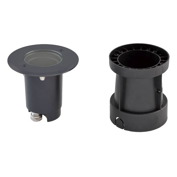 Der Leuchtenkörper ist aus Aluminium, die Abdeckplatte hingegen aus V2A-Edelstahl gefertigt. Die Kabeleinführung erfolgt über die am Boden befindliche Kabelverschraubung, welche für Kabel bis 9mm Durchmesser geeignet ist. Es besteht die Möglichkeit, die Leuchte ohne den im Lieferumfang enthaltenen Kunststoff-Einbautopf zu montieren, in diesem Fall beträgt der Lochausschnitt 96mm während die Einbautiefe unverändert bleibt. Durch die GU10 Hochvoltfassung können unterschiedliche Leuchtmittel bis max. 35W in der Leuchte betrieben werden. Der Schwenkwinkel beträgt 10°. Zusätzlich ist ein mattes Schutzglas im Lieferumfang enthalten.