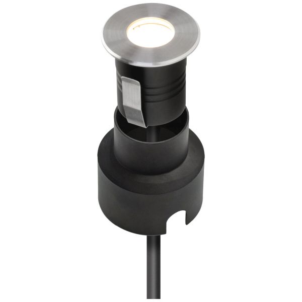 Der Leuchtenkörper ist aus massivem Aluminium, die Abdeckplatte hingegen aus V4A-Edelstahl gefertigt. Die im Lieferumfang befindliche Einbauhülse kann optional zur Montage verwendet werden, wobei die Einbautiefe unverändert bleibt. Zum Schutz gegen unbeabsichtigtes herausnehmen, läuft die Hülse nach Oben konisch zu und hat dementsprechend einen Durchmesser von 58mm Unten und 39mm Oben. Da der LED-Chip fest verbaut ist, fallen keine zusätzlichen Kosten für Leuchtmittel an. Die maximale Überfahrgeschwindigkeit beträgt 20km/h. Die Art der Dimmung ist abhängig vom verwendeten Netzgerät.