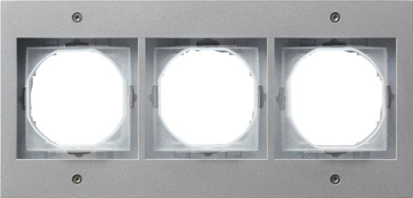 Abdeckrahmen Gira TX_44 Farbe Alu Farbe Alu Merkmale: Halogenfreies, schlag- und bruchsicheres, UV-beständiges, witterungsbeständiges und mikrobiologisch unbedenkliches Material Hinweise: Abdeckrahmen montagefreundlich ohne Werkzeug, Demontage mit Schraubendreher T9 oder T10. Dübelbefestigung möglich. Zentraleinsätze demontagegeschützt. Lieferumfang: Mit Dichtungsflansch.