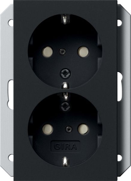 SCHUKO-Doppelsteckdose 16 A 250 V~ mit erhöhtem Berührungsschutz (Safety Plus) für Unterputz-Gerätedose 1fach Schwarz matt (lackiert) Merkmale: Hinweise: Passend in jede handelsübliche Gerätedose. Erhöhter Berührungsschutz (Safety Plus) gemäß DIN VDE 0620-1. Lieferumfang: