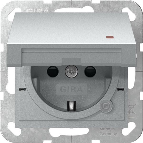 SCHUKO-Steckdose 16 A 250 V~ mit Klappdeckel, orangem Kontrolllicht und erhöhtem Berührungsschutz (Safety Plus) Farbe Alu System 55 Merkmale: Tragring ist in Verbindung mit den Befestigungskrallen und Krallenschrauben geerdet. Schnellbefestigung (ca. 3,5 Umdrehungen pro Befestigungskralle). Eingehauste Spreizkrallen. Einfachere Krallenbefestigung durch robusten Schraubenkopfantrieb PZ1 / Schlitz / PH. Vereinfachte Installation durch patentierte Anordnung der großen Schlüssellochprofile mittels Dosenschrauben. Geringe Einbautiefe. Große, ergonomisch geformte Lösehebel. Stabiler Erdungsbügel mit massiven Erdungsfingern. Stabiler und korrosionsbeständiger Stahltragring. Bruchsicherer Thermoplastsockel. Hinweise: Erhöhter Berührungsschutz (Safety Plus) gemäß DIN VDE 0620-1. Lieferumfang: Glimmlampenelement ist im Lieferumfang enthalten.
