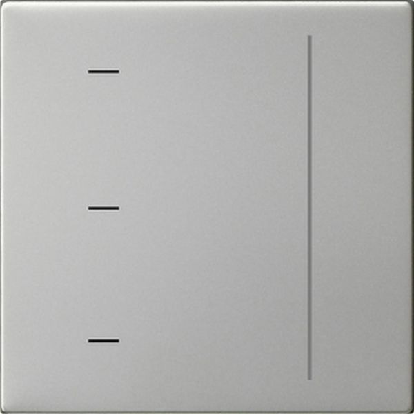 System 3000 Touchaufsatz Edelstahl System 55 Merkmale: Die Steuerung erfolgt durch leichtes Berühren oder Wischen auf der Bedienfläche. Drei Helligkeitswerte speicherbar, mit System 3000 Dimmeinsatz. Laufzeit und eine individuelle Zwischenposition speicherbar mit System 3000 Jalousiesteuereinsatz. Sperrfunktion, mit System 3000 Jalousiesteuereinsatz. Statusanzeige durch LED-Leuchtbalken zur Darstellung der Helligkeit oder Behangposition. Permanente oder zeitweise Statusanzeige (Statusanzeige erlischt nach 5 Sekunden ohne Berührung). Betrieb auf System 3000 Schalt-, Dimm- oder Jalousieeinsatz bzw. Nebenstelleneinsatz 3-Draht. Hinweise: Lieferumfang: