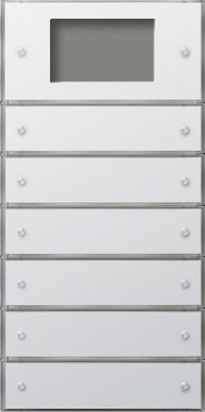 Tastsensor 3 Plus 6fach (2+4) für KNX Reinweiß glänzend Flächenschalter Merkmale: Montage auf Busankoppler 3 oder Busankoppler 3 externer Fühler. Demontageschutz durch Verschraubung. Grafikdisplay mit Hintergrundbeleuchtung und vielfältigen Anzeigemöglichkeiten, z. B. Temperatur, Uhrzeit, Datum, Alarm- und Hinweistexte. Weiße Betriebs-LED. Mehrfarbige Status-LED (rot, grün, blau) über die ETS parametrierbar. Interner Temperatursensor zum Messen der lokalen Raumtemperatur. Tastsensoreigenschaften: Wippen- oder Tastenfunktion für jede Bedienfläche einstellbar. Wippenfunktion: Schalten, Dimmen, Jalousiesteuerung, Wertgeber 1 Byte, Wertgeber 2 Byte, Szenennebenstelle, 2-Kanal-Bedienung und manuelle Lüftersteuerung. Tastenfunktion: Schalten, Dimmen, Jalousiesteuerung, Wertgeber 1 Byte, Wertgeber 2 Byte, Szenennebenstelle, 2-Kanal-Bedienung, Reglernebenstelle, Reglerbedienung, Heizungsuhrbedienung und manuelle Lüftersteuerung. Reglernebenstelle oder Reglerbedienung: Betriebsmodusumschaltung, (definierte Wahl eines Betriebsmodus oder Wechsel zwischen verschiedenen Betriebsmodi bei Reglernebenstelle), Wechsel des Präsenzzustands, Sollwertverschiebung. Sperrobjekt zum Sperren von einzelnen Tasten- bzw. Wippenfunktionen. Anzeige einer Alarmmeldung durch Blinken sämtlicher LEDs. Mehrfarbige Status-LED (rot, grün, blau) ist global oder jeweils getrennt konfigurierbar. Über den Bus kann eine überlagerte Funktion aktiviert werden, wodurch Farbe und Anzeigeinformation einzelner Status-LEDs prioritätsbedingt verändert werden können. Betriebs-LED EIN, AUS, automatische Abschaltung oder über Objekt schaltbar. Kommunikationsobjekt zur Helligkeitssteuerung der Status-LED, Beschriftungsfeldbeleuchtung und Hintergrundbeleuchtung des Displays. Raumtemperaturregler-Eigenschaften: Betriebsmodi: Komfort, Stand-by, Nacht und Frost- bzw. Hitzeschutz mit jeweils eigenen Temperatursollwerten (für Heizen und bzw. oder Kühlen). Komfortverlängerung durch Präsenztaste. Frost- bzw. Hitzeschutzumschaltung durch Fensterstatus oder durch Frostschutzautomatik. Anzeige der Raumtemperaturregler-Informationen über das Gerätedisplay. Wahlweise ein oder zwei Regelkreise. Je Heiz- oder Kühlstufe sind verschiedene Regelungsarten konfigurierbar: PI-Regelung (stetige oder schaltende PWM) oder 2-Punkt-Regelung (schaltend). Regelparameter für PI-Regler und 2-Punkt-Regler einstellbar. Interner Temperatursensor und bis zu zwei externe Temperaturfühler (1 x Objekt, 1 x bedrahtet) zur Raumtemperaturmessung möglich. Optionaler externer bedrahteter Fernfühler für z. B. Estrichfühler bei Fußbodenheizung. Heizungsuhr mit 28 Schaltzeiten. LC-Displayeigenschaften: Grafikdisplay mit schaltbarer LED-Hintergrundbeleuchtung. 1-Bereichs- oder 2-Bereichsdarstellung. Textanzeigen im Display in den Sprachen: Deutsch, Englisch, Niederländisch, Norwegisch, Russisch und Polnisch. Weitere Sprachen im Internet verfügbar. Hinweise: Professionelle Beschriftung über den Gira Beschriftungsservice www.beschriftung.gira.de. Lieferumfang: Blanko Beschriftungsschilder liegen bei.