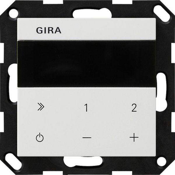 Unterputz-Radio IP Reinweiß seidenmatt System 55 Merkmale: Internetradio zur Unterputz-Montage. Mit dem Radio können über WLAN Internetradiosender abgespielt werden. Alternativ kann das Radio zum Bedienen von Sonos Lautsprechern genutzt werden. Auch das Einspielen von Musikdateien via Bluetooth® von einem mobilen Endgerät ist möglich. Die Bedienung des Radios erfolgt über die kapazitiven Tasten des Bedienaufsatzes. Zur Bedienung ist lediglich eine leichte Berührung der Symbole notwendig. Die Einbindung in das WLAN kann in einfachster Form über die WPS-Funktion erfolgen. Darüber hinaus kann die Inbetriebnahme komfortabel mit der Gira System 3000 App über ein mobiles Endgerät vorgenommen werden. Mit der App können auch alle weiteren Einstellungen des Radios erfolgen. Es können bis zu 20 Favoritensender hinterlegt werden, die ersten drei Sender können direkt mit den Favoritentasten am Radio aufgerufen werden. Weitere Funktionen über die App sind die Auswahl der Betriebsarten Internet-Radio oder Sonos-Bedienung, die individuelle Anordnung der Displayinhalte, Klangeinstellung, Wetterprognose und Weckfunktion. Über den 230-V-Nebenstelleneingang kann das Radio z. B. mit einem Lichtschalter oder einem Bewegungsmelder zusammen mit der Raumbeleuchtung eingeschaltet werden. Das Radio ist kompakt in einem Unterputz-Einsatz untergebracht und kann somit in eine einzelne Gerätedose installiert werden. Der Lautsprecher kann mit dem Radio in einer Kombination oder auch abgesetzt in eine Gerätedose installiert werden. An den Einsatz Radio können zwei Lautsprecher angeschlossen werden. Das Radio kann im Mono- und Stereobetrieb arbeiten. Im Sleep-Modus schaltet das Radio 30 Minuten nach dem Einschalten automatisch wieder aus. Auch als Wecker kann das Radio genutzt werden. Hinweise: In Kombination mit weiteren elektronischen Geräten unter einer gemeinsamen Abdeckung kann es zu Empfangsbeeinträchtigungen kommen. Lieferumfang: