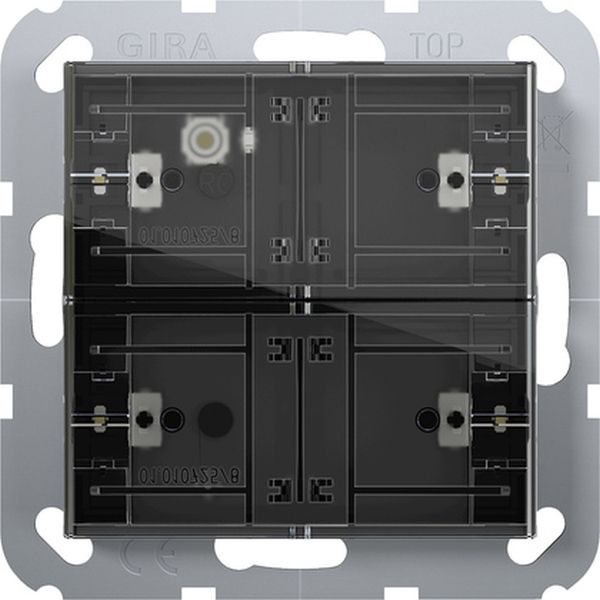 Tastsensor 4.55 Standard 2fach für KNX mit Inbetriebnahme-Wippe Merkmale: Tastsensor mit integriertem Busankoppler. Integrierter Temperatursensor. Der Tastsensor ist zu vervollständigen mit separat zu bestellenden Wippensets. Es stehen drei Wippensets Varianten zur Verfügung: Wippensets ohne Beschriftungsmöglichkeit, mit Beschriftungsfeld oder individuell gelaserte Wippen. Der Tastsensor kann waagerecht (Einbaulage normal) oder senkrecht (Einbaulage Um -90° gedreht) eingebaut werden. Wippen- oder Tastenfunktion für jede Bedienfläche einstellbar. Taktiles Feedback bei Tastendruck. Funktionen: Schalten, Dimmen von Helligkeit und Frabtemperatur, Farbsteuerung, Jalousie, Wertgeber, Szenennebenstelle, 2-Kanal-Bedienung und Reglernebenstelle. Schalten: Reaktion beim Drücken und/oder Loslassen, Einschalten, Ausschalten, Umschalten. Dimmen von Helligkeit und Farbtemperatur: Zeiten für kurze und lange Betätigung, Dimmen in verschiedenen Stufen, Telegrammwiederholung bei langer Betätigung, Senden eines Stopptelegramms bei Ende der Betätigung. Farbsteuerung: Art der Farbsteuerung, Farbraum und Farbwerte sind einstellbar. Der Befehl beim Drücken, die Zeit zwischen Schalten und Farbdurchlauf / Helligkeitsverstellung, der Startwert und die Schrittweite der Verstellung sowie die Telegrammwiederholung bei langer Betätigung ist einstellbar. Jalousie: Der Befehl beim Drücken und das Bedienkonzept ist einstellbar. Das Bedienkonzept kann in den Zeiten für kurze und lange Betätigung und Lamellenverstellung angepasst werden. Wertgeber: Die Funktionsweise (1 Byte, 2 Byte, 3 Byte oder 6 Byte Wertgeber) und der Wert ist einstellbar. Szenennebenstelle: Die Funktionsweise (ohne oder mit Speicherfunktion) und die Szenennummer ist einstellbar. 2-Kanal-Bedienung: Durch einen Tastendruck können bis zu zwei Telegramme auf den KNX Bus ausgesendet werden. Das Bedienkonzept kann eingestellt und die Zeit für kurze und lange Betätigung angepasst werden. Die Funktionsweise der Kanäle ist getrennt voneinander einstellbar. Reglernebenstelle: Die Funktionsweise (Betriebsmodusumschaltung, Zwang-Betriebsmodusumschaltung, Präsenzfunktion und Sollwertverschiebung) ist einstellbar. Sperrfunktion zum Sperren von einzelnen Tasten bzw. Wippen. Reglernebenstellen-Eigenschaften Die Reglernebenstelle ist als Funktion einer Wippe bzw. Taste parametrierbar. Steuerung eines Raumtemperaturreglers (Betriebsmodi, Präsenzfunktion und Sollwertverschiebung). Auswertung des Reglerzustands über die Status-LED. Temperaturmessung ist aktivierbar. Messung der Raumtemperatur mit internen Fühler oder optional durch eine Messwertbildung der intern gemessenen Temperatur mit einer externen Temperatur. Funktionen der Status-LED Die Funktionsauswahl erfolgt je Status-LED. Folgende Funktionen sind parametrierbar: immer AUS, immer EIN, Betätigungsanzeige, Telegrammquittierung, Statusanzeige, Ansteuerung über separates LED-Objekt, Betriebsmodusanzeige, Anzeige Reglerstatus, Anzeige Präsenzstatus und Anzeige Sollwertverschiebung. Farbe ist parametrierbar. Die Farbauswahl erfolgt entweder gemeinsam für alle Status-LED oder getrennt für jede Status-LED des Gerätes. Die Status-LED können wahlweise rot, grün oder blau leuchten. Die Helligkeit der Status-LED ist in sechs Stufen einstellbar. Mit der Nachtabsenkung kann die Helligkeit der Status-LED in den Nachtstunden über Kommunikationsobjekt reduziert werden. Zusätzlich kann für jede Status-LED eine überlagerte Funktion freigegeben werden, wodurch eine andere Farbe und Anzeigeart eingestellt werden kann. LED-Orientierungsbeleuchtung: Zur Orientierung können alle LED dauerhaft ausgeschaltet oder eingeschaltet sein, den Status eines separaten Kommunikationsobjekts anzeigen (EIN, AUS, blinken) oder bei einem beliebigen Tastendruck eingeschaltet und nach Ablauf einer Verzögerungszeit automatisch wieder abgeschaltet werden. Allgemeine Funktionen Sperrfunktion zum Sperren von einzelnen Tasten bzw. Wippen. Temperaturmessung: Raumtemperaturmessungen durch internen Fühler oder internen und externen Fühler. Hinweise: KNX Data Secure kompatibel. Firmware-Updates sind mit der Gira ETS Service App (Zusatzsoftware) möglich. Professionelle Beschriftung über den Gira Beschriftungsservice www.beschriftung.gira.de. Lieferumfang: Anschluss- und Abzweigklemme für KNX im Lieferumfang enthalten. Tragring mit Schrauben im Lieferumfang enthalten. Der Tastsensor wird mit einer programmneutralen Inbetriebnahme-Wippe geliefert. Das passende Wippenset zum Schalterprogramm ist separat zu bestellen.
