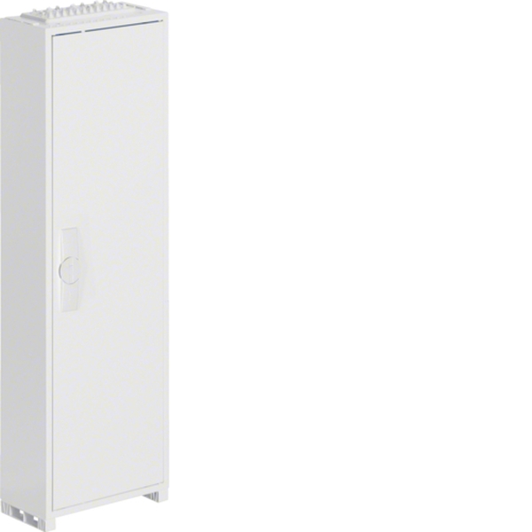 Feldvert. AP, univers, IP44, SKII, 72PLE, 1x6 Reihen, 950x300x161mm, ohne Klemme.Feldverteiler nach DIN EN 61 439-1/-3, Maßnorm nach DIN 43 870. Zum Einbau für Geräte bis 125 A, Luft- und Kriechstrecken nach DIN EN 60664-1. Bestehend aus Schrank mit Tür aus pulverbeschichtetem und eingebranntem Stahlblech. Ab Schrankbreite 800 mm (3-feldig) zwei türiger Aufbau. Rechte Türen maximal 2-feldig breit. Komplettschrank mit Einbausatz bestückt mit profilierten Tragschienen, 7,5 mm hohen Hutschienen in 125 mm Mittenabstand und passenden Berührungsschutzabdeckungen, ohne PE/N-QuickConnect-Klemmen und ohne Träger. Leitungseinführungen oben/unten durch herausnehmbare flexiblen Kunststoffflanschplatten, zusätzlich austauschbar. Tür mit innenliegenden justierbaren Scharnieren und einem Öffnungswinkel von 110°. Türen rechts und links anschlagbar, werkzeugloser wechselbar Türanschlag. Türverschluss serienmäßig mit Dreipunkt-Stangenverschluss und plombierbaren Klappgriff. Austauschbare sperrbare Schließsysteme und Türen, siehe Zubehör.