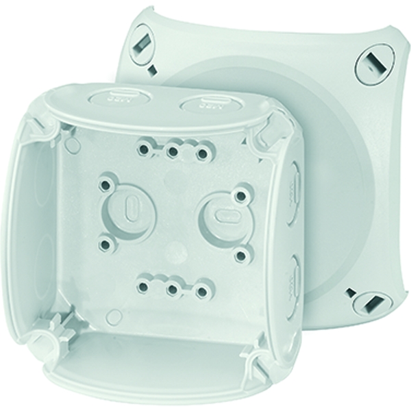 Kabelabzweigkasten aus hochwertigem Thermoplast für die ungeschützte Installation im Freien oder Aufputz-Anwendungen in Gebäuden. Beständig gegen Witterungseinflüsse wie UV-Belastung durch Sonneneinstrahlung, geschützt gegen Regenwasser, temperaturbeständig und schlagfest. Deckelbefestigung über Schnellverschlüsse. Mit Außenlaschen zur Befestigung. Seewasserbeständig, für Offshore-Anwendungen. Mit Zulassung für die Installation auf Schiffen. Kabelabzweigkasten ohne Klemme. Kabeleinführung über metrische Vorprägungen. Anbau-Kabelstutzen im Zubehör. Mit Deckelhalteband.