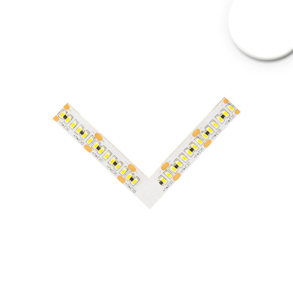 Flexibler Lichtstreifen für den Innenbereich mit 120° Abstrahlwinkel, dimmbar und hoher Farbwiedergabe. Eckverbindung leuchtend 0,5W für Flexband mit MiniAMP Stecker, 24V, 6W, IP20, 4000K