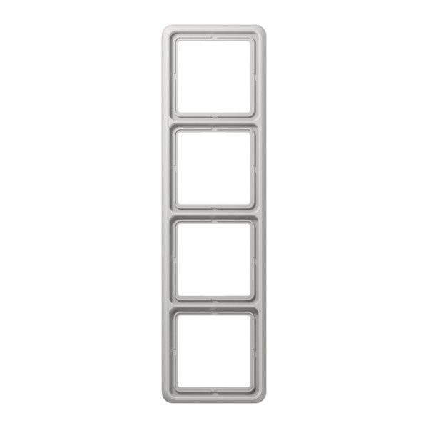 Rahmen 4fach, lichtgrau für waagerechte und senkrechte Kombination Mit Dichtungsflansch Art.-Nr.: 551 WU ist der Schutzgrad IP44 gewährleistet. Material: Duroplast Maße (B x H): 81 x 294 mm
