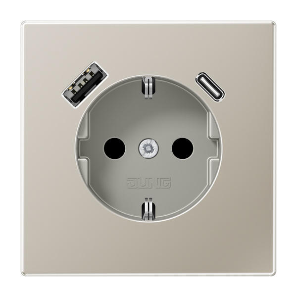 A mit integriertem erhöhten Berührungsschutz (Safety Plus) mit 1 USB-Buchse Typ A und 1 USB-Buchse Typ C mit Federklemmen für starre und unbehandelte flexible Leiter bis 2,5 mm2 Verbindungsklemmen nach DIN VDE 0620 Montage in Gerätedose mit Abmessungen nach DIN 49073 Tiefe der Gerätedose (Innenmaß): min. 57 mm Material: Edelstahl 1.4303 X4 CrNi 18-12