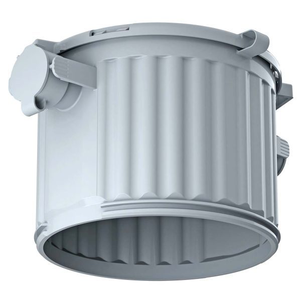 "HaloX® 100 für Ortbeton (1281-00). Für die Verarbeitung im Ortbeton ist das formstabile HaloX®-System modular aufgebaut. Drei Gehäusedurchmesser mit einer Vielzahl an runden, quadratischen sowie universellen Frontteilen ermöglichen die Integration von Leuchten und Lautsprechern bis zu einem Einbaudurchmesser von 250 mm û auch bei Sichtbeton. Mit Tunnel bietet das System ausreichend Raum für die Aufnahme von Betriebsgeräten, z. B. LED-Treiber. Optionale Verlängerungsringe dienen der Vergrößerung der Einbautiefe. Alle Frontteile sind feuchtigkeitsabweisend und können bereits vor dem Verlegen der ersten Bewehrung exakt positioniert und aufgenagelt werden. Gehäuse und Frontteile werden kraftschlüssig und stabil miteinander verrastet und lassen sich auch nachträglich noch frei ausrichten. Durch die werkzeuglose Öffnungstechnik mit Kombinationseinführung M20/M25 können Rohre einfach und schnell eingeführt werden und selbst bei Fehlbelegung lässt sich die Einführung einfach wieder verschließen. Sie bietet eine sichere Rohrrückhaltung mit Tiefenanschlag, so dass ein nachträgliches innenseitiges Kürzen der Rohre entfällt. Nach dem Vergießen lassen sich Frontteile mit definiertem Einbaudurchmesser durch einen gezielten Hammerschlag öffnen. Die Frontteile für universelle Öffnungsmaße können flächig an- oder überspachtelt werden. Anschließend erfolgt die Erstellung der gewünschten Installationsöffnung mit herkömmlichen Fräswerkzeugen, z. B. MULTI 4000. Installationsart: Ortbeton