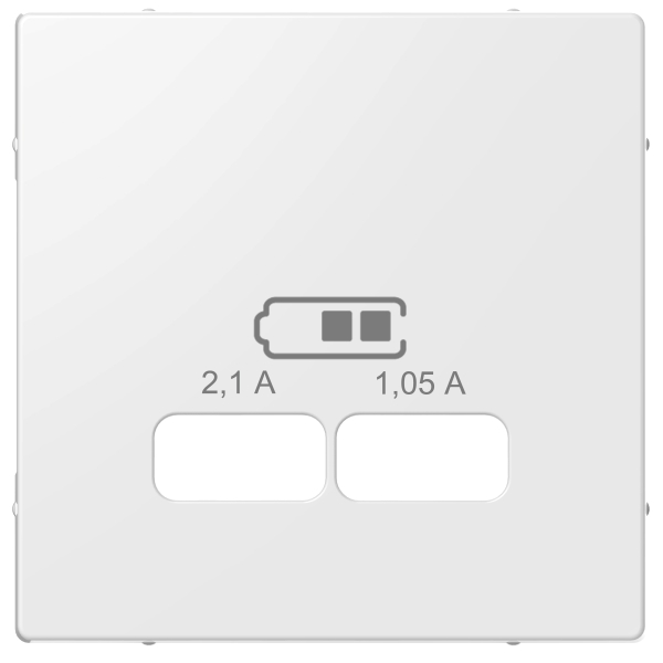 19 Für System M. Für USB Ladestation-Einsatz. Zu komplettieren mit USB Ladestation-Einsatz MEG4366-0100. Material Thermoplast brillant. Farbe polarweiß glänzend.
