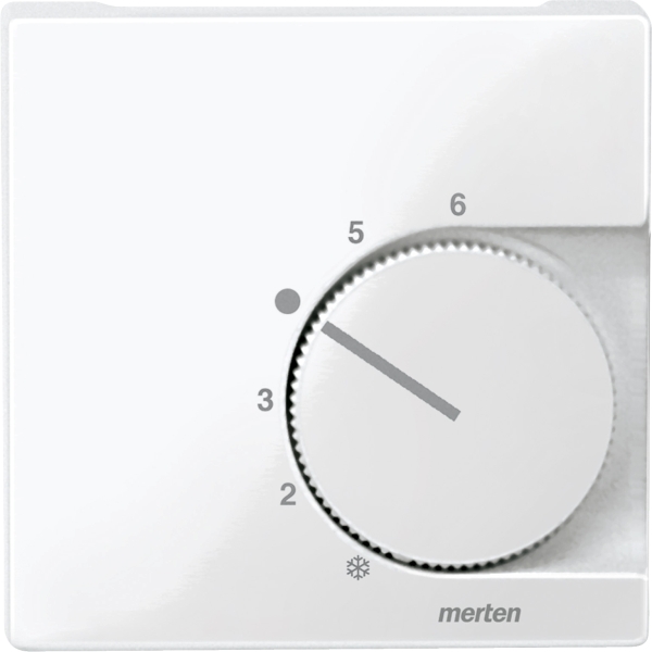 Besonders flache Bauform. Zu komplettieren mit Raumtemperaturregler-Einsatz mit Wechselkontakt 536400/01. Raumtemperaturregler-Einsatz MEG5773-0000. Material Thermoplast brillant. Farbe polarweiß glänzend.