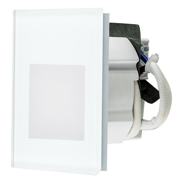 Die LED-Wandeinbauleuchte ist so konzipiert, dass diese entweder direkt in der Wand mit zwei Schrauben befestigt, oder wahlweise auch in Schalterdosen montiert werden kann. Die Schrauben werden durch den magnetisch abnehmbaren Rahmen abgedeckt. Auf Grund der Bauform und Leistung ist die Leuchte perfekt als Orientierungsleuchte geeignet. Dank der MM-Kennzeichnung kann die Leuchte auch im Möbelbau zum Einsatz gebracht werden. Das mitgelieferte Netzgerät ist bereits an der Rückseite der Leuchte montiert.