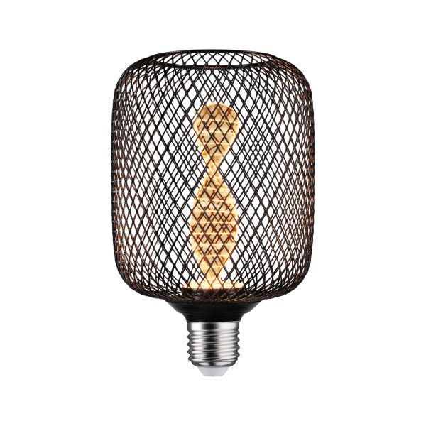 Das LED Leuchtmittel Metallic Glow verbindet dezentes, goldenes Licht mit einem dekorativen, schwarzen Metallkorb. Durch die Kombination aus einem lasergravierten Innenkolben und einer feinen Gitterstruktur, eignen sich die Leuchtmittel perfekt für Pendel- oder Tischleuchten mit E27 Fassung. Das leuchtende Element am Ende des Innenkolbens strahlt perfekt gerichtetes Licht nach unten. Zeitloses Design trifft hier auf effiziente LED-Technik und sorgt für gemütliche und goldene Akzentbeleuchtung. Farbtemperatur: 1800K - Goldlicht Raumlicht rundum