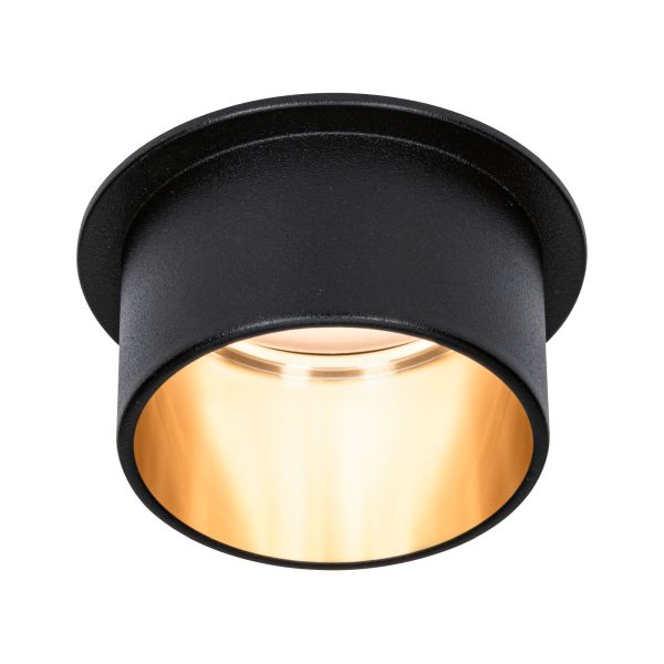 Die dekorative Einbauleuchte Gil in der Farbe Schwarz matt#Gold sorgt mit ihrem zweifarbigen Design für Lichthighlights und setzt blendfreie Akzente an der Decke. Durch den hervorstehenden Dekozylinder wird eine geringere Einbautiefe im Vergleich zu den zurückgesetzten Lichtpunkten benötigt. Hat man sie entdeckt, möchte man gar nicht mehr wegschauen. Die Strahler punkten mit brillanter Technik: Die wechselbaren LED Coins liefern angenehm warmweißes Licht, lassen sich mit einem herkömmlichen Lichtschalter in drei Stufen dimmen und sind untereinander unendlich verkettbar. Sie benötigen einen Bohrdurchmesser von 62 mm. Mit handelsüblichem Lichtschalter in 3-Stufen dimmbar Inkl. auswechselbarem LED Leuchtmittel Farbtemperatur: 2700K - Warmweiß Für den 230V-Direktanschluss