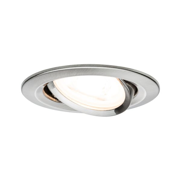 Der runde Nova Einbaustrahler in Eisen gebürstet mit 6,5W und 460lm, bietet gutes Licht, stimmiges Design und hohe Energieeffizienz. Durch die Schwenkbarkeit lässt sich das Licht überall dort hinlenken, wo es benötigt wird. Die puristische Optik wird nicht von Sprengringen gestört: Da das Leuchtmittel von hinten eingesetzt wird ist kein Sprengring notwendig. Dank 230V-Direktanschluss, können die Leuchten ganz einfach uneingeschränkt miteinander verkettet werden. Durch die unkomplizierte Fixierung mit Haltefedern, bleibt die Zimmerdecke auch nach mehrmaligem Ein- und Ausbau unbeschädigt. Im Lieferumfang sind effiziente und langlebige GU10 LED-Leuchtmittel enthalten, die mit ihrem warmweißen Licht für ein stimmungsvolles Ambiente sorgen. Dank integrierter 3-Step-Dim-Funktion, kann sie durch mehrmaliges Betätigen eines handelsüblichen Lichtschalters in drei Stufen gedimmt werden. Inkl. auswechselbarem LED Leuchtmittel Farbtemperatur: 2700K - Warmweiß Einfaches Einsetzen des Leuchtmittels ohne Sprengring Für den 230V-Direktanschluss Mit handelsüblichem Lichtschalter in 3-Stufen dimmbar