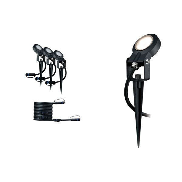 Mit dem Plug & Shine Sting Ergänzungsset können bis zu drei zusätzliche Leuchten an die bestehende 24V-Lichtinstallation angeschlossen werden. Die Spieße eignen sich ideal zum Anstrahlen von Pflanzen oder Gegenständen, lassen sich individuell ausrichten und sind absolut wetterbeständig. Bei Bedarf kann das System um weitere Plug & Shine Komponenten erweitert werden. Plug & Shine Ergänzungsset bestehend aus 3 Leuchten und Verbindungskabel Kombinierbar mit allen Leuchten und Zubehörteilen aus der Plug & Shine Serie LED-Leuchtmittel (fest verbaut) im Lieferumfang enthalten Farbtemperatur: 3000K - Warmweiß Mit dem Plug & Shine Controller (s. Zubehör) schaltbar und dimmbar per Fernbedienung