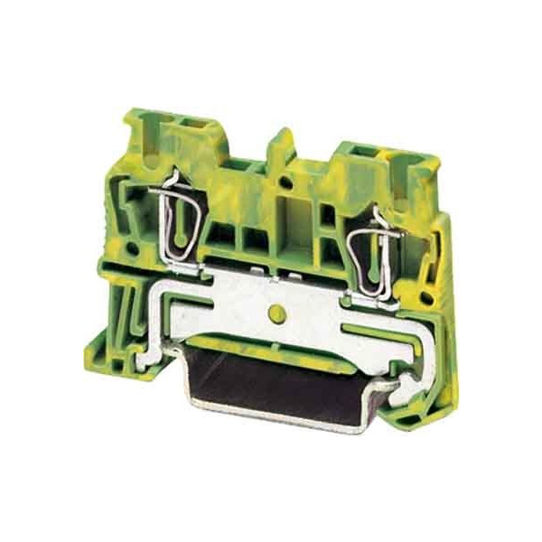 Zugfeder-Schutzleiterklemme, Anzahl der Anschlüsse: 2, Anschlussart: Zugfederanschluss, 1. Etage, Querschnitt: 0,08 mm² - 1,5 mm², Montageart: NS 35/7,5, NS 35/15, Farbe: grün-gelb