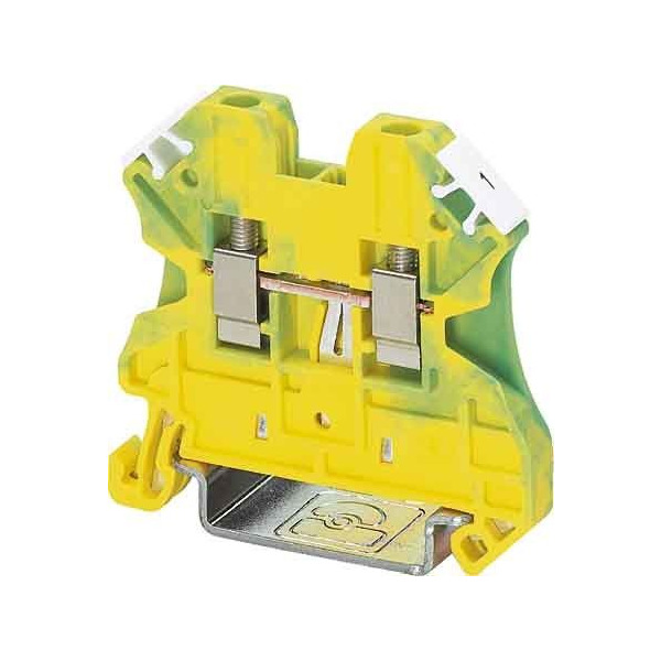 Schutzleiter-Reihenklemme, Anzahl der Anschlüsse: 2, Anschlussart: Schraubanschluss, Querschnitt: 0,14 mm² - 4 mm², Montageart: NS 35/7,5, NS 35/15, Farbe: grün-gelb