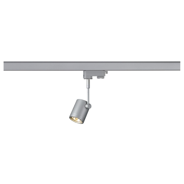 Dreh- und schwenkbarer Hochvoltstrahler BIMA 1 mit passendem Adapter für das 3Phasen Hochvolt-Schienen-System. Die aus Aluminium gefertigte Leuchte ist durch den verbauten GU10 Sockel für Halogen- sowie LED-Leuchtmittel geeignet.