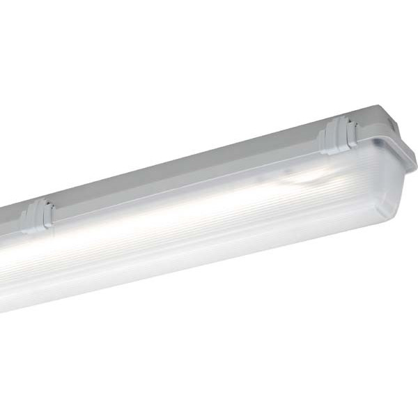 LED-Feuchtraum-Wannenleuchte, 27 W, 4240 lm, SKI, IP65, symmetrisch-breitstrahlend, 4000 K, Ra= 80, Ta -20 °C/+40 °C, L80>70000 h (@ Ta max), L90>50000 h (@ Ta 25°C), Wanne PMMA satiniert, Verschluss Kunststoff, Gehäuse glasfaserverstärktes Polyester, Farbe grau, EAN/GTIN:4041254257181.Robuste LED-Feuchtraum-Wannenleuchte mit hochschlagfestem glasfaserverstärktem Polyestergehäuse und satinierter Abschlusswanne mit hoher Schlagfestigkeit. Mehrteilige unverlierbare Verschlussklammern, davon zwei Sicherheitsverschlüsse, Silikondichtung. Lackierter Aluminiumreflektor mit hocheffizienten Zhaga-konformen LED-Modulen und EVG mit Überlast- und Kurzschlussschutz.
