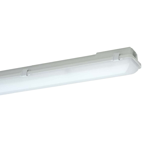 LED-Feuchtraum-Wannenleuchte, 17 W, 2470 lm, SKI, IP65, symmetrisch-breitstrahlend, 4000 K, Ra= 80, Ta -20 °C/+40 °C, L80>50000 h (@ Ta max), Wanne PMMA satiniert, Verschluss Kunststoff, Gehäuse glasfaserverstärktes Polyester, Farbe grau, EAN/GTIN:4041254301211.LED-Feuchtraum-Wannenleuchte mit glasfaserverstärktem Polyestergehäuse, satinierter PMMA-Abschlusswanne mit Schlagzähkomponente, geschäumter Dichtung und Verschlussklammern, davon zwei Sicherheitsverschlüsse. Lackierter Reflektor mit hocheffizienten Zhaga-konformen LED-Modulen und EVG mit Überlast- und Kurzschlussschutz.