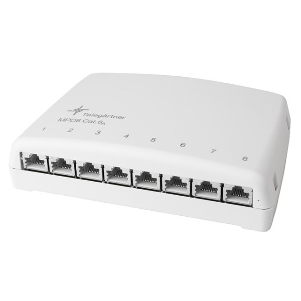 Kleine Netze benötigen nicht zwingend 19¿-Schränke oder große Wandverteiler. Einfache, kostengünstige Verteiler sind gefragt, die dezent und unauffällig installiert werden können. Das kompakte Verteiler-Gehäuse kann auf der Wand, unter dem Schreibtisch, im Mobiliar und durch den integrierten Adapter auch auf Tragschienen TH35 nach DIN EN 60715 montiert werden. Der MPD8-Mini-Verteiler in LSA Ausführung der Kategorie 6A - mit Komponenten-Zertifikat gemäß ISO/IEC 11801- ist für höchste Übertragungsraten bis einschließlich 10 Gbit/s verfügbar. Die RJ45-Buchsen sind für min. 750 Steckzyklen mit RJ45/RJ11/RJ12-Stecker ausgelegt und ebenso für Anwendungen wie PoE+ gemäß IEEE 802.3at geeignet. Leistungsmerkmale: 360 Grad Schirmkontaktierung (geschirmte Ausführung) direkt auf der Leiterplatte durch Klemmschelle ohne zusätzliches Verdrillen des Abschirmgeflechts, Abschirmhaube aus rostfreien Stahl, Anschluss der Adern über LSA Plus-Schneidklemmen mit Farbkennzeichnung nach EIA/TIA 568A und B, Anschlussfreundlich bei Einhaltung der aufgedrillten Strecke bei den Anschlussdrähten auf max. 13 mm, Cat.6A (ISO/IEC)- & Cat.6A-Ausführungen mit Kontaktüberbiegeschutz: geeignet für 6- (RJ11/12) und 8-polige Stecker (RJ45)