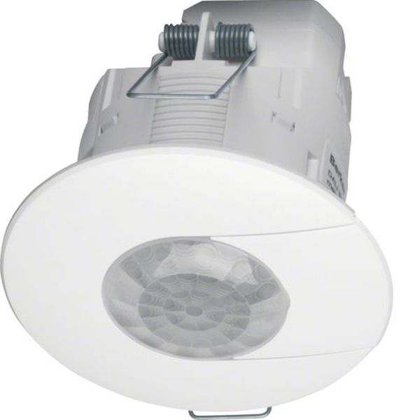 DALI IR Präsenzmelder Hauselektronik polarweiß, matt. DALI IR Präsenzmelder, zur Beleuchtungssteuerung in gewerblichen Gebäuden und Wohnhäusern, mittels der Erfassung sich bewegender Personen, mit Federbügeln zum Einbau in Hohlwänden oder abgehangenen Decken, Grundeinstellung direkt am bereits eingebauten Gerät ohne Demontage möglich oder optional über den IR Konfigurations-Handsender für Präsenzmelder, Auswahl verschiedener Betriebsarten, wie Halbautomatik-/Automatik-/Lern-/Tag-/Flur-/Büro-/Testmodus, Einstellung von zwei Modis bei Spannungsunterbrechung, sowie Aktiv/Passiv Schaltung zum aktivieren bzw. deaktivieren des Lichtschwellwertes in der jeweiligen Erfassungszelle und 3 Dimmbetriebsarten. Ein/Ausschaltung, Auf- und Abdimmen über Taster oder mittels optionalem IR Handsender für Präsenzmelder möglich mit zusätzlicher Funktion von 2 Lichtszenen, integrierter DALI/DSI-Ausgang (Broadcast) zum Schalten/Steuern von 24 DALI/DSI EVG, mit roter und grüner Quittierungs-/Empfangs-LED, mit Schraubklemmen.