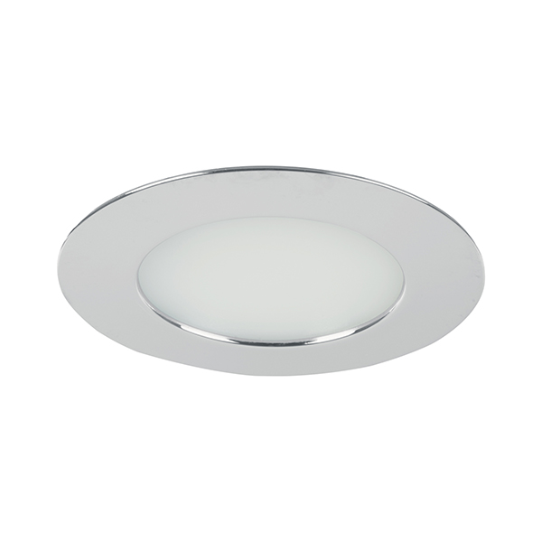 LED-Einbaudownlight, IP44, chrom, rund. Ausgeführt in kompakter Bauform für werkzeuglose Schnellmontage zum Deckeneinbau. Leuchte optimiert zur Installation in Möbeln und Holzwerkstoffen. Montageart: Einbaumontage, Montageort: Deckenmontage, Material: Aluminium-Druckguss / Kunststoff, Schutzart raumseitig: nach DIN EN 60529: IP44, Schutzklasse: (EN 61140) III, Spannung: 12V, Leistung: 6 W, Anzahl der Leuchtmittel / Fassungen: 1 Stück, Lichtstrom: 435 lm, Farbtemperatur: 2.900 K, Abstrahlwinkel: 60°, Verstellbarkeit: nicht verstellbar, Mit Betriebsgerät: Nein, Dimmbar: Abhängig von Betriebsgerät, Art der Dimmung: Abhängig vom Betriebsgerät.