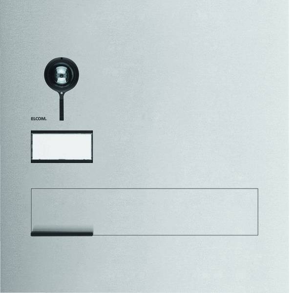 Briefkastenfront-Mauerdurchwurf Video 1/1 2Draht Edelstahl matt ONE. Video Außenstation für Sprechanlage nach DIN EN 50486 in 2Draht-Technik mit Mauerdurchwurf-Briefkastenfront für Hausbriefkästen nach DIN EN 13724 zur Montage auf separat erhältlichem Durchwurf-Kasten. Außenstation bestehend aus einer 2 mm dicken Frontplatte aus Edelstahl matt gebürstet mit Sprech- und Kameraöffnung, Farbkamera mit kratzfester Abdeckung, schraubenlose Befestigung mit Einrast-Federmechanismus und Öffnungsmechanik mit Vandalenschutz für Mauerdurchwurf-Kasten, Einwurfklappe(n) mit schwarzem Griffstück 110 Grad öffnend und gedämpft schließend, flächenbündiges Namensschild(er) (von vorn wechselbar) mit Ruftaste(n) inklusive weißer LED-Hinterleuchtung und steckbarem Anschluss-Klemmblock mit Schraubklemmen. Vorverdrahtete Frontplatte mit Elektronikkomponenten in gekapselter Monoblock-Bauweise mit Lautsprecher, Mikrofon und Kamera. Geräte-Konfiguration über rückseitiges LED-Display mit 3 Softtasten und 7-Segment-Anzeige, Anzeigemodus 180 Grad drehbar für eine optimale Lese- und Bedienbarkeit sowie automatische Adressierung bei erstmaligem Spannungszuschaltung. Umgebungslicht abhängige Einschaltung der Tastenbeleuchtung, anpassbar an Umgebungsverhältnisse über Helligkeitssensor. Funktionen: Kamera horizontal und vertikal ein- und feststellbar von vorne, Umgebungslicht abhängige Einschaltung einer integrierten IR-Beleuchtung zur Unterstützung der Kamerafunktion bei Dunkelheit, integrierte Kameraheizung zur Vermeidung von Kondensat- und Frostbeschlag der Kamerakugel. Integrierter Türöffnerkontakt, Ruftaste mit Licht-/Türöffner-/Relais-Funktion einstellbar. Lautstärke, Mikrofonempfindlichkeit, Türöffnerfunktion und Ruftaster-Hinterleuchtung einstellbar. Ruftaster mit Quittierungston (abschaltbar) und taktiler Rückmeldung. Lautsprecher und Mikrofon sabotagegeschützt. Ein-Mann-Inbetriebnahme durch LED-Display Konfiguration.