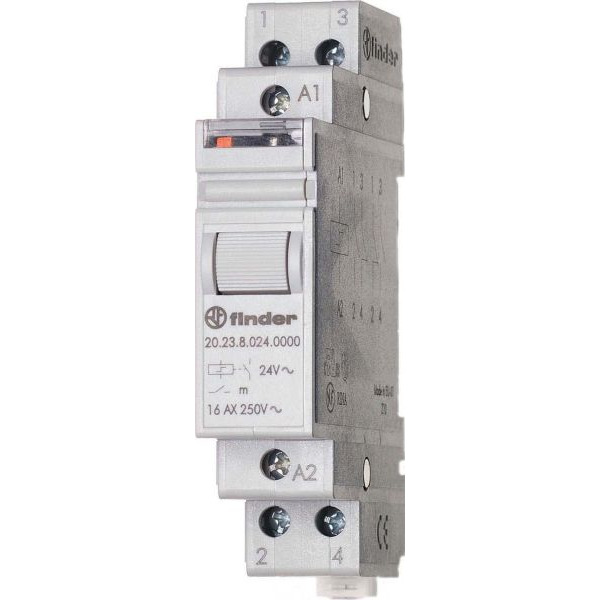 Stromstoßschalter für 35 mm-Schiene, 1 Schließer und 1 Öffner für 16 A / 250 V AC, Kontaktmaterial AgSnO², max. Schaltleistungen bei 230 V AC: AC1 4000 VA, AC15 750 VA, Glüh- und Halogenlampen 2000 W, Leuchtstofflampen kompensiert 750 W, Leuchtstofflampen unkompensiert 1000 W, Energiesparlampen 400 W, LED (230 V AC) 400 W, NV-Halogenlampen oder LED mit EVG 400 W, NV-Halogenlampen oder LED mit KVG 800 W, Spulendaten: 230 V AC, 6,5 VA, 2500 Ohm, Breite 17,5 mm, Schaltfolge: aus an / an aus, Prüftaste und mechanische Schaltstellungsanzeige, Relaisschutzart: IP 20