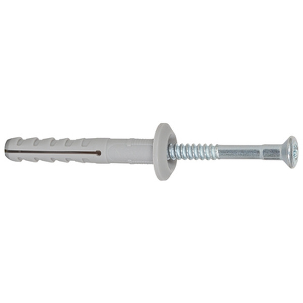 Der fischer Nageldübel N-S mit Senkkopf besteht aus einem hochwertigen Nylondübel und einer galvanisch verzinkten Nagelschraube. Diese sind für eine schnelle Montage bereits vormontiert. Der Nageldübel wird in der zeitsparenden Durchsteckmontage durch das Anbauteil eingeführt. Beim Einschlagen der Nagelschraube spreizt die Dübelhülse auf und verankert sicher im Baustoff. Der fischer Nageldübel N-S mit Senkkopf ist ideal für die Befestigung von Holzkonstruktionen in allen Baustoffen im Innenbereich.