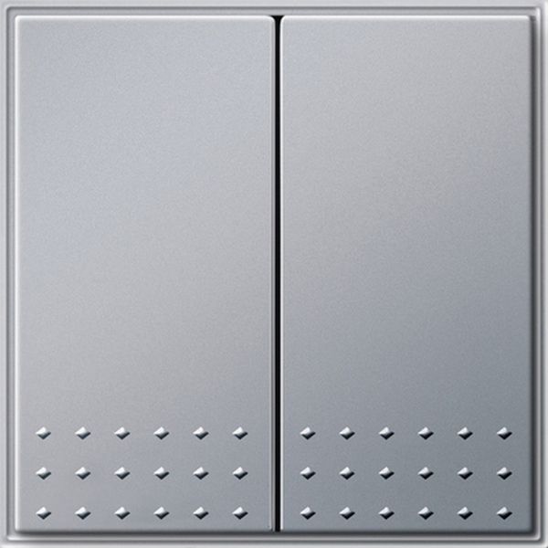 Tastschalter 10 AX 250 V~ mit Wippe 2fach Farbe Alu Wechselschalter 2fach Mit abtastbarer Bedienerführung. Diebstahlschutz durch optional verschraubbares Klemmstück. Dadurch entfällt das Verdübeln der Abdeckrahmen.