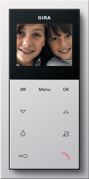 Wohnungsstation Video AP Plus Reinweiß glänzend Flächenschalter Merkmale: Bei Verwendung je einer Spannungsversorgung für Türkommunikation können bis zu 28 Wohnungsstationen Video AP parallel genutzt werden. Die Wohnungsstation Video AP erkennt automatisch, ob eine Spannungsversorgung für Türkommunikation angeschlossen ist. Eine Brücke zwischen ZV und BUS ist nicht notwendig. Farbdisplay mit LED-Hintergrundbeleuchtung. OSD-Funktion, d. h. Texteinblendung im Display zur Statusanzeige und Menüführung. Kapazitive Bedientasten mit integrierten Leuchtdioden zur Zustandsanzeige: Die Tasten werden durch leichte Berührung bedient. Zuschaltbare Türöffnerautomatik: bei eingeschalteter Funktion wird der Türöffner nach Betätigung der Türstationsruftaste automatisch angesteuert. Automatische Rufannahme: direktes Hineinsprechen oder -hören in einen Raum nach Internruf. Gebührenfreier hausinterner Sprechverkehr mit bis zu zehn weiteren Wohnungsstationen. Die Bedientasten der Wohnungsstation Video AP steuern die folgenden Funktionen: Manuelles Ein- und Ausschalten des TFT-Farbdisplays. Kameraumschaltung gezielte Anwahl der angeschlossenen Farbkameras. Im Display erfolgt die Textanzeige, welche Kamera aktuell angesteuert wird. Schalten von Licht und anderen Funktionen in Verbindung mit dem Schaltaktor oder dem Unterputz-Schaltaktor. Ansteuerung des Türöffners. Rufton ein- und ausschalten. Rufannahme. Aktivierung der Durchsetzfunktion. Einstellung von Rufton- und Sprechlautstärke. Funktionen im Endkundenmenü Internruf, Schalthandlung, Ruftonmelodie, Helligkeit, Farbsättigung, Kontrast, Einschaltzeit des Displays, Sprache (21 Sprachen wählbar), Tastentöne, Türöffnerautomatik (nach Installateurfreigabe), automatische Rufannahme (nach Installateurfreigabe). Zusätzliche Funktionen im Installateurmenü: Einstellung Haupt-/Nebendisplay, Frequenzeinstellung, Terminierung der Leitung, Versionsanzeige, Werkseinstellung, Display ein- bzw. ausschalten, LED-Beleuchtung ein- bzw. ausschalten, Ruftastenzuordnung, Internruf zuordnen, Freigaben für Türöffnerautomatik und automatische Rufannahme. Kartenslot für SD-Speicherkarte. SD-Speicherkarte. Neue zusätzliche Funktionen im Endkundenmenü: Interner Bildspeicher (nach Installateurfreigabe) für bis zu 48 Bilder. Manueller Übertrag interner zu externner Bildspeicher (SD-Speicherkarte). Bildspeicher manuell löschen. Manuellen Schnappschuss auslösen. Schalthandlungen und Internrufe umbenennen. Datum/Uhrzeit ändern. Neue zusätzliche Funktionen im Installateurmenü: Freigabe des internen Bildspeichers. Einstellen des Bildintervals und der Aufnahmegeschwindigkeit. Datum/Uhrzeit einstellen. Eigenschaften der SD-Speicherkarte: Verzeichnis für zehn Klingeltöne, davon fünf frei konfigurierbar im WAVE-Format. Ordner für externen Bildspeicher (max. 200 Bilder). Hinweise: Montage ohne Abdeckrahmen oder mit Abdeckrahmen 2fach ohne Mittelsteg aus den Schalterprogrammen System 55 und Flächenschalter. Lieferumfang: Die SD-Speicherkarte ist im Lieferumfang enthalten.