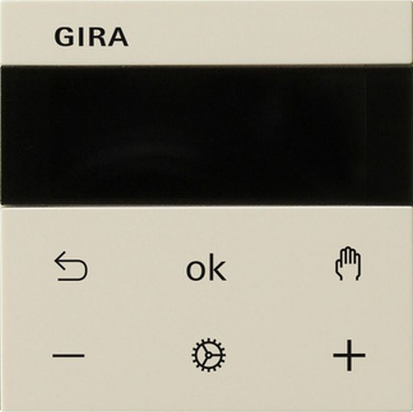 System 3000 Raumtemperaturregler BT Cremeweiß glänzend System 55 Merkmale: Bedienung und Programmierung mit mobilem Endgerät (Smartphone oder Tablet) über Bluetooth® mit der Gira System 3000 App. Bedienung über kapazitive Sensorfläche. Manuelles und zeitgesteuertes Regeln der Raumtemperatur. Funktionen am Aufsatz Aktuelle Uhrzeit als Schaltzeitpunkt speicherbar, Schnellprogrammierung. Automatische Sommer-/Winterzeitumstellung, abschaltbar. Zeitschaltuhr mit drei Speicherbereichen je Speicherbereich Komfort- und Absenkzeitpunkt für Mo-Fr und Sa+So. Einstellung einer Komfort-, Absenk-, Kühl- und Frostschutztemperatur. Reglerausgang: Pulsweitenmodulation (PWM) oder 2-Punkt-Regelung. Aufheizoptimierung (Temperatur wird zur eingestellten Zeit erreicht). Anpassung an Ventile (stromlos offen oder stromlos geschlossen). Aktivieren des Kühlbetriebs über den Einsatz. Unterstützt internen und externen Temperaturfühler. Temperatursturzerkennung. Bediensperre. Ventilschutzfunktion. Display schaltet nach 2 Minuten aus, Dauerhafte Anzeige der aktuellen Uhrzeit möglich. Funktionen mit Gira System 3000 App Wochenzeitschaltuhr mit 40 individuell programmierbaren Schaltpunkten und Temperaturen. Urlaubsmodus (Beginn, Ende, Temperatur). Boostfunktion: Schnellaufheizen für max. 5 Minuten. Sperre der vor Ort Bedienung möglich. Einbinden eines externen Temperatursensors über Bluetooth®. Minimale und maximale Temperaturwerte einstellbar. Kopieren von Einstellungen und Zeitprogrammen auf weitere Aufsätze möglich. Die Kombination des Aufsatzes 5393xx mit 540700 ist erst ab I05 (Index) möglich. Hinweise: Bei Verbindung mit der Gira System 3000 App wird die Uhrzeit und das Datum aktualisiert. Lieferumfang: