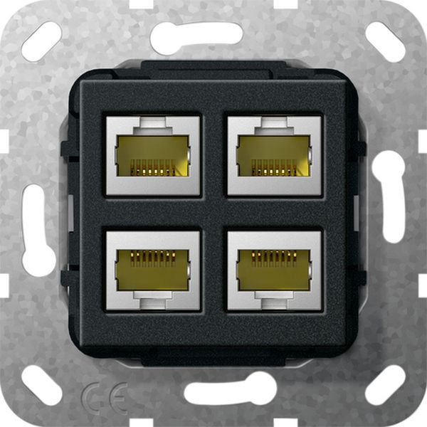 Einsatz Modular Jack RJ45 Cat.6A 10 Gbit-Ethernet 4fach Kupplung Merkmale: Hinweise: Nur für Schraubbefestigung. Achtung! Bauraum für Stecker und Biegeradien beachten. Bei Einsätzen mit Kupplungen beachten: Nicht für Kanalinstallation und Standardgerätedose geeignet. Anschluss mit Winkelsteckern empfohlen. Bei Verwendung dieser Steckvorrichtungen besteht für angeschlossene Geräte eine Leistungsbegrenzung von 15 Watt. Installationsempfehlung: Kaiser Elektronic-Dosen Unterputz-Montage: Kaiser Best.-Nr.: 1068-02 Hohlwandmontage: Kaiser Best.-Nr.: 9062-94 Betoninstallation: Kaiser Best.-Nr.: 1268-40 Lieferumfang: