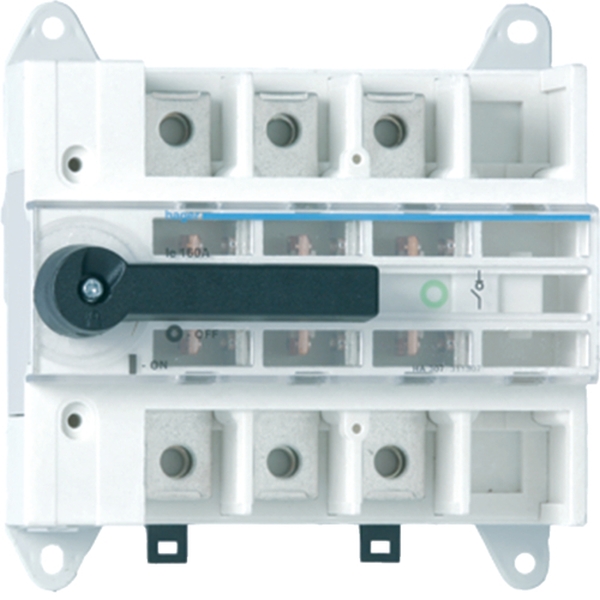 Lasttrennschalter mit Trennungsanzeige 3polig 160A.Lasttrennschalter nach DIN EN 60947-3 zur EIN/AUS-Schaltung in Anlagen. Aufgebaut in modularer Bauform zum Aufschnappen auf DIN-C-Hutprofilschiene oder zum Aufbau auf Montageplatte.