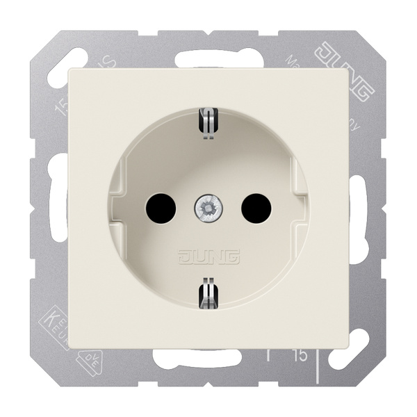 SCHUKO®-Steckdose, weiß mit integriertem erhöhten Berührungsschutz (Safety Plus) mit Federklemmen für starre und unbehandelte flexible Leiter bis 2,5 mm2 Verbindungsklemmen nach DIN VDE 0620 Tragring, Krallen und Krallenschrauben sind über eine Erdungsschiene in die Schutzmaßnahme eingebunden. Material: Thermoplast Maße (B x H): 55 x 55 mm