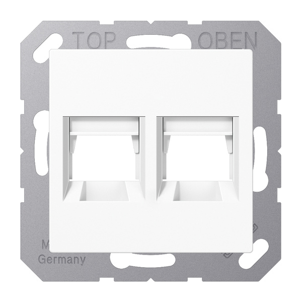 WW (kpl. mit Tragring, Schraubbefestigung) Verschlussklappe mit Rückstellfeder Innenmaß Keystone-Halterung 14,8 x 20,7 mm für Modular-Jack-Steckbuchsen TE Connectivity (Tyco Electronics / AMP NETCONNECT) für Kabel Ø max. 10 mm: EMT Cat. 5e, 180° Art.-Nr. 0-0188650-5 EMT Cat. 5e, 90° Art.-Nr. 0-0188650-6 für Kabel Ø max. 6,5 mm: EMT Cat. 5e, 180° Art.-Nr. 0-0338038-1 EMT Cat. 5e, 90° Art.-Nr. 0-0338038-2 Toolless Jack Cat. 3 ungeschirmt: Art.-Nr. 0-1116603-x Toolless Jack Cat. 5e ungeschirmt: Art.-Nr. 0-1116604-x, Toolless Jack Cat. 5e geschirmt: Art.-Nr. 0-1339015-1 Toolless Jack Cat. 6 ungeschirmt: Art.-Nr. 0-1116605-x, Toolless Jack Cat. 6 geschirmt: Art.-Nr. 0-1339016-1 MTRJ-LWL-Jack (Lichtwellenleiter): Art.-Nr. 1278414-1, tiefe Dose (mind. 62 mm) erforderlich für 2 Steckbuchsen